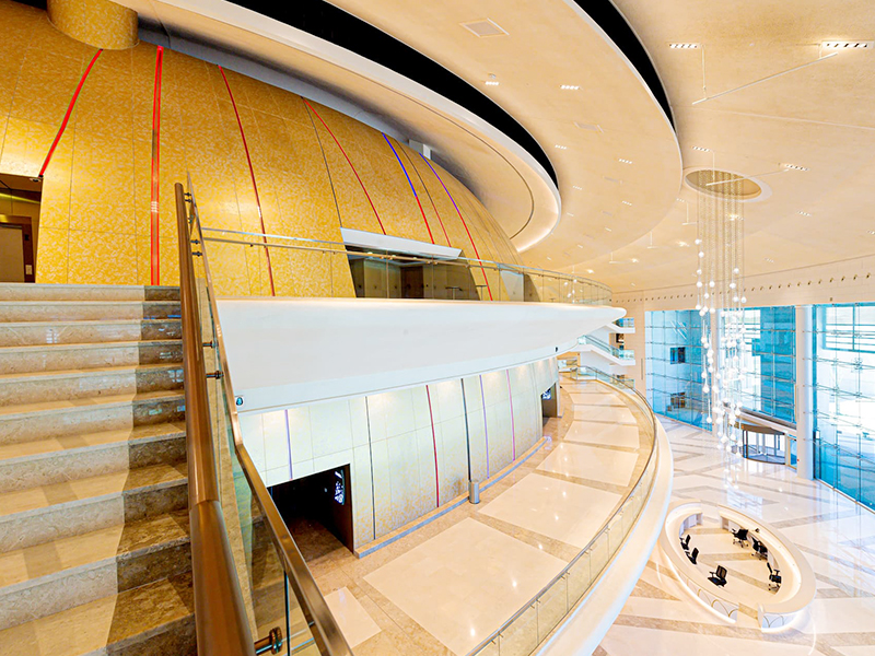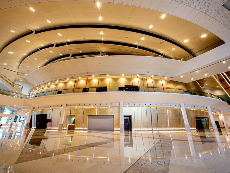 The Oman Convention & Exhibition Centre is located in its own fully integrated precinct only four kilometers from Muscat International Airport. The design of the Centre ensures a flow of the meeting spaces to suit the most discerning conference and exhibition organizers. It also incorporates expansive concourse areas to enable ease of large delegations with floor to ceiling windows overlooking landscaped gardens and water features.